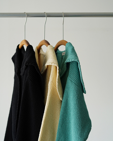 編み地には、畝のある表情豊かな糸を採用。シンプルな装いにも立体感をプラスします。あえて甘めに編み立てることで、空気を含んだ軽やかな着心地を実現。