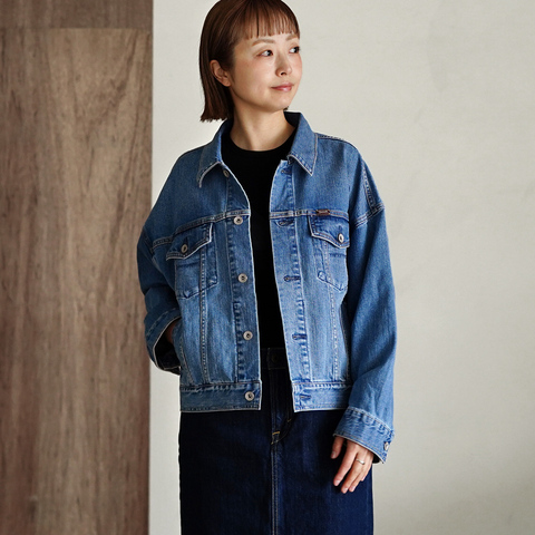 ほどよい存在感を添えてくれるデニムジャケット。肩を落としたオーバーサイズシルエットがリラックスした印象を生み、コンパクトな丈感が全体のバランスを引き締めます。