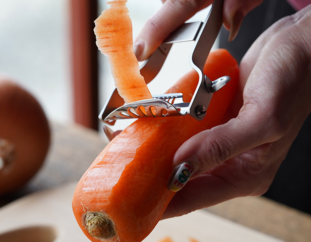 皮むきはもちろん、ささがきやスライスが簡単にできるので、包丁を出す手間もなく調理の時短に繋がります。