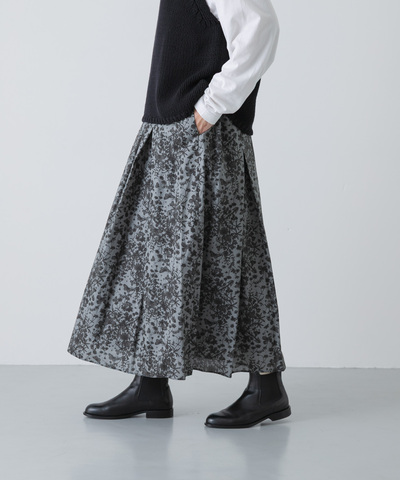 繊細なパターンが魅力的で穿きやすい総柄スカート。