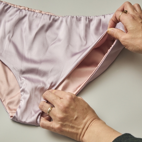 二重仕立てだから、ほんのりあたたかいのも嬉しいポイント。生理中や、体調のすぐれないときにも不快感を和らげてくれます。シルクは「汚すのがもったいない」と思いがちですが、「実はこのショーツは、生理中だからこそ履いていただきたい一枚」とつくり手は語ります。「ショーツというプロダクト」よりも、それを身につける女性ご自身をより大切にしてほしい、という思いでこちらを開発したのだそうです。