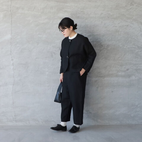 上品さとナチュラル感が絶妙なバランスのリネン素材のタックパンツです。