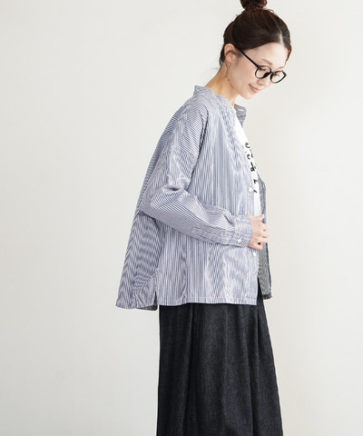 blue willow|【SALE 20%OFF】CLツイルボーダーブラウス トップス プルオーバー 長袖 01ews11624