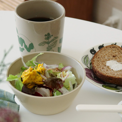 そんな“あったらいいな”を叶える、陶器見えの樹脂ボウルです。見た目は陶器のようですが、軽くて丈夫で落としてもドキッとしない。さらに、電子レンジや食器洗浄機もOKという懐の深さです。