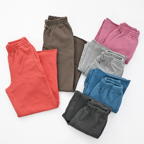 こちらは、スウェットパンツ。生地は薄くもなく厚すぎない程よい生地厚のコットン裏毛素材を使用。ドライで素朴な風合いが特徴。ウォッシュ加工が施されており、ヴィンテージ感のある表情を作り上げています。