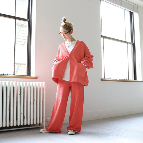 ウエストはゴムと紐のイージー仕様。ゆったりとラフな穿き心地です。お揃いのカーディガンやプルオーバーとセットアップでの着こなしもオススメです。