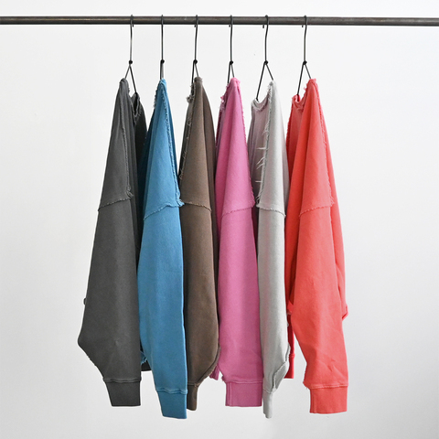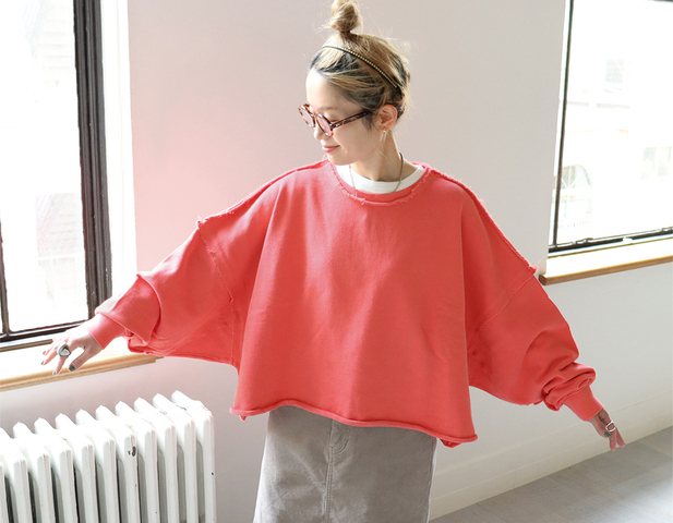 こちらは、クルーネック・ワイドプルオーバースウェット。生地は薄くもなく厚すぎない程よい生地厚のコットン裏毛素材を使用。