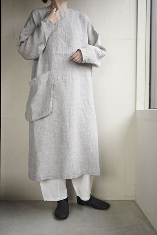 Gymphlex|コットンタイプライター バンドカラー 長袖 ワンピース gy-g0107otd-kr