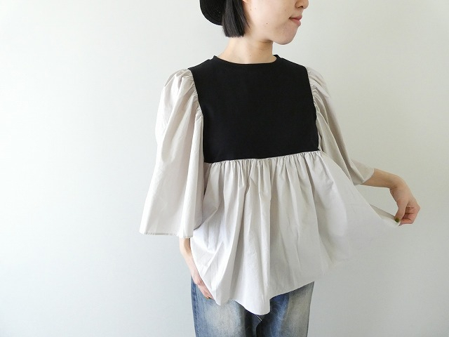 UNIVERSAL TISSU|クラシック天竺バイカラーギャザーフレアプルオーバー(US230CT027)
