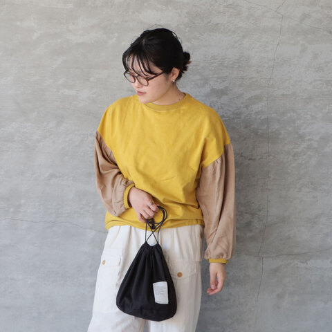 ミニ裏毛素材をベースに、袖部分を異素材で切り替えたデザインプルオーバー。