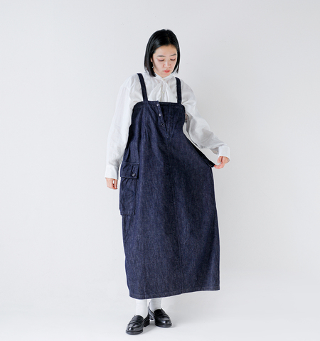 デニムの表情を楽しみながら、軽やかな印象で着用できるロングサロペットスカート。8.5ozのライトデニムは程よいハリがあり、シルエットをきれいに保ってくれます。
