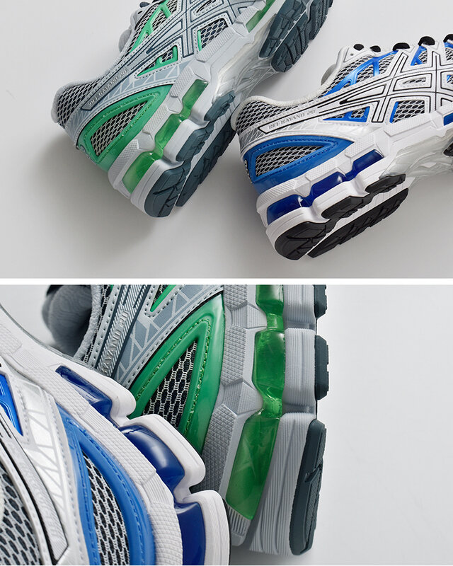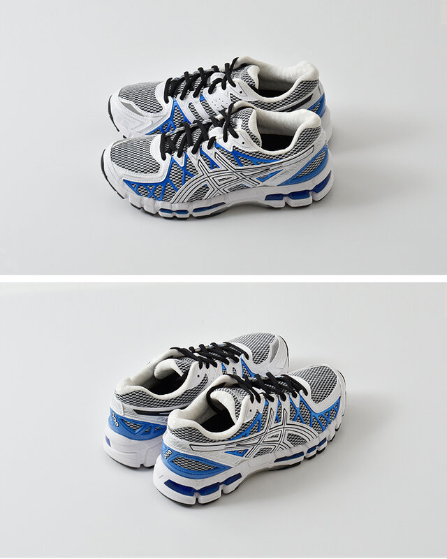ツートーンのメッシュアッパー構造には、優れたフィット感をもたらすFLUIDFIT(フルイドフィット)を採用。網状に張り巡らされたTPU素材は、サポート性を高めるために足の動きに沿うよう配置されており、金属を彷彿させるアルマイト処理による仕上げを施すことでデザインのアクセントとしています。アッパー同様、建設的な美しさをもつソールにはGELテクノロジーとGUIDANCE TRUSSTIC(ガイダンストラスティック)によるサポートシステムを搭載し、日常シーンで優れた快適性と安定性を提供します。