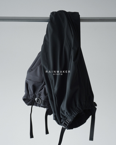 ポケット内にはカードポケットを備え、移動や旅先での実用性にも配慮されています。あくまでミニマルなデザインで機能性を誇示することの無い姿勢に、RAINMAKERの美意識が表れています。