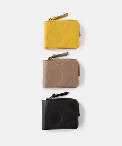 立体感が際立つ、ランダムドットの牛革二つ折りウォレット