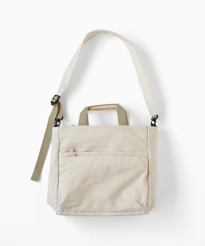 mumokutekiオリジナルのリネンバッグシリーズ。 収納力抜群なトートバッグにもなるショルダーバッグ。