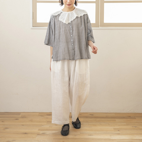 さらりとした肌触りと、清涼感のあるナチュラルな風合いが魅力のリネン素材を使用したクロップドパンツ。