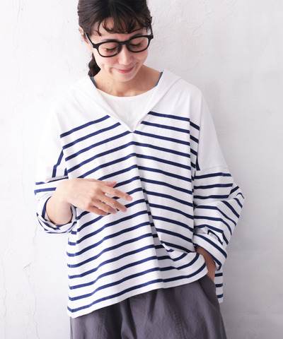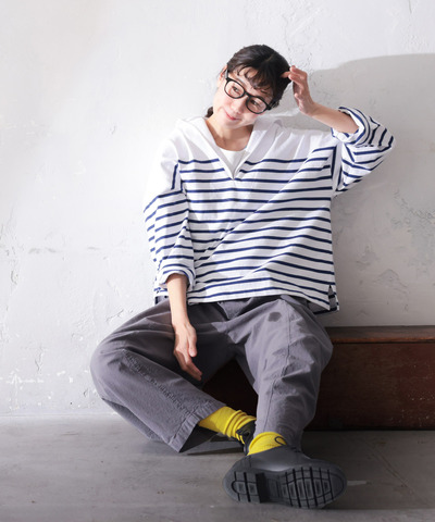 オフホワイト×ネイビー 身長:162cm 着用サイズ:M