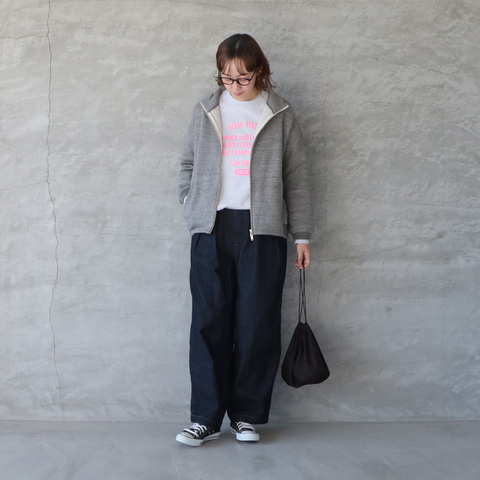 フロントはダブルジップなので、開け方次第で抜け感を出したり、バランスよく着こなせるのも魅力です。
