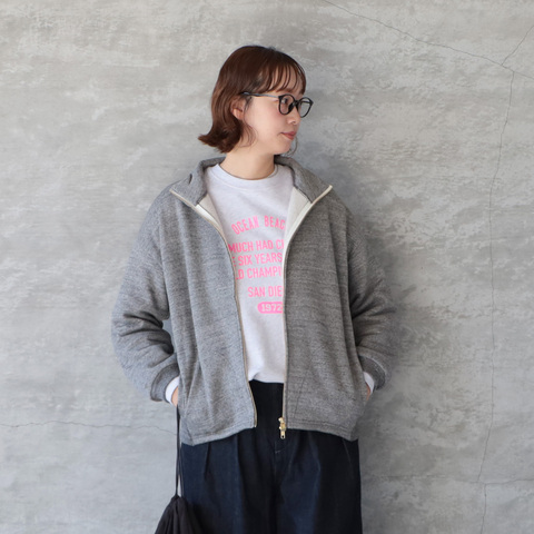 ゆったりとしたシルエットのスタンドカラーZIPパーカー。