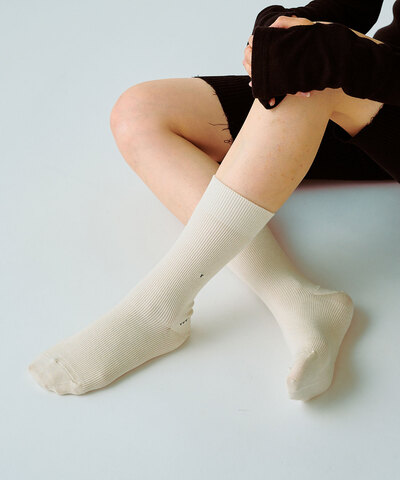 触れた瞬間、しっとりと肌に溶け込むようなシルクのとろみを感じる靴下。