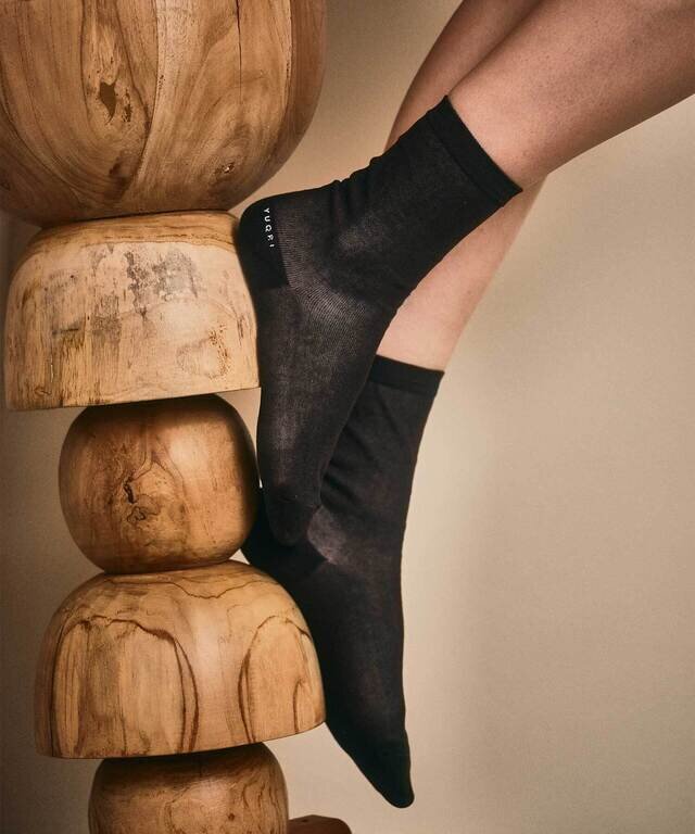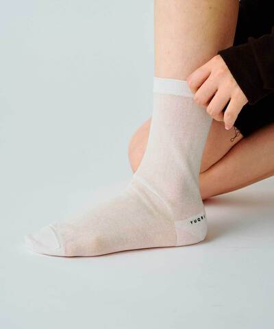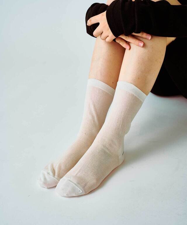 オーガニックコットンをベースに強いハリ感を持たせた糸は、ほのかな透け感と構築的シルエットで、足もとに涼やかな上品さを添えてくれます。