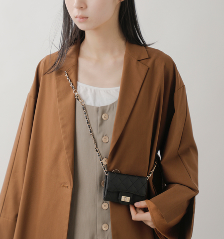 ヴィーガンスムースレザーを使用した、アクセサリー感覚で身に着けれるキルティングショルダーバッグ。カードや小銭を入れるのに適した、手のひらサイズのミニバッグです。