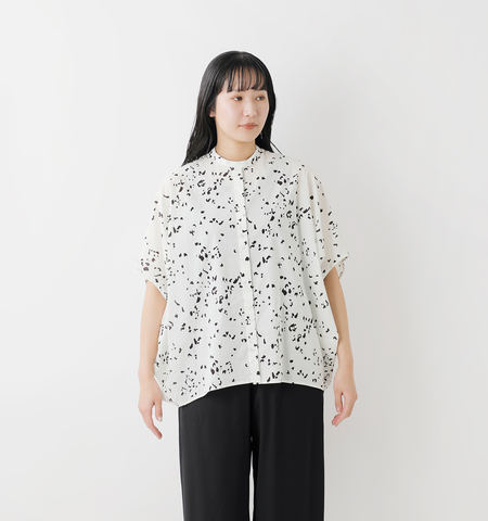 mizuiro ind|コットン プリント スタンドカラー コクーン シャツ 1-230133