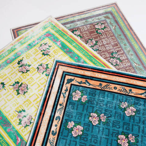 ヴィンテージラグのような重厚な趣がありながらも、どこかポップな印象のアイテムです。