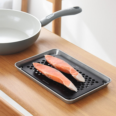 熱伝導に優れた高品質の素材(アルミニウム合金)で作られており、さらに穴あき設計になっていることで、冷凍食材の冷たさを素早く放出。解凍が早く進みます。