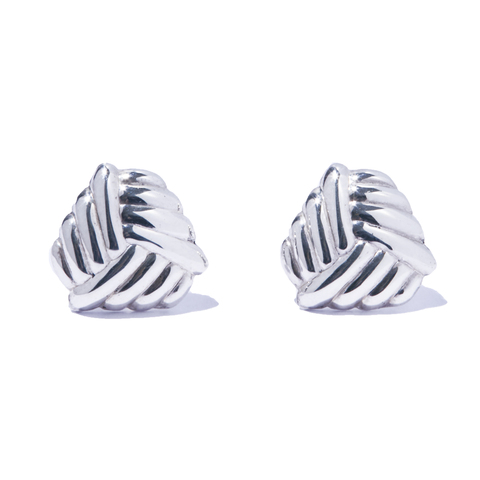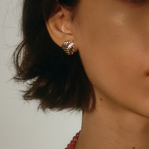 シルバーの静けさとモチーフの有機性が同居し、アーティな空気を纏わせるピアス。