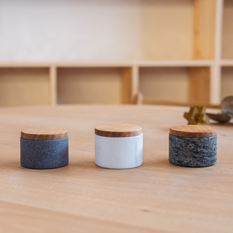 石は重厚で凛とした存在感を、木は温もりと柔らかさを持つ素材。対照的なふたつを組み合わせることで、単体では生まれない奥行きと洗練を宿します。