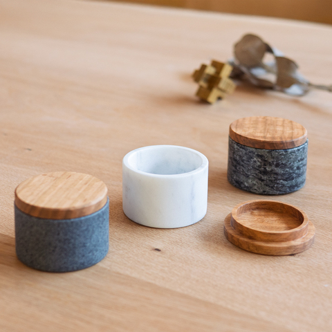天然木の蓋と、天然石の美しさが融合したシンプルで美しいデザイン。アクセサリーや小物を入れるだけでなく、インテリアとして飾るだけでも洗練された空間を演出します。