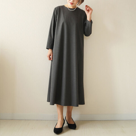 胸元から足元にかけてゆとりがあり、体のラインを拾いすぎないのも嬉しいポイント。