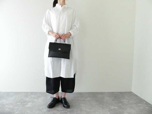 洗いざらしの様な自然な風合いが心地良くサラリとした肌触りです。ウエストにはギャザー、切替え部分にはタックが施され、ふんわりとした絶妙なシルエットです。