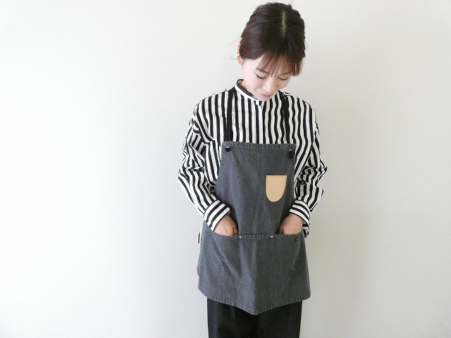 ヴィンテージのワークエプロンがモチーフとなったレザーポケット付きエプロンです。