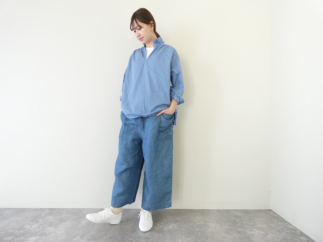 リネンデニムならではのムラ感と、少し明るめのブルーが、春夏の装いに軽さを添えてくれます。