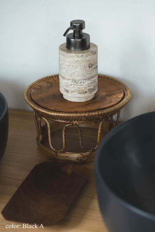 ポンプ部分はマットなブラックカラー、ボディにはホワイト〜ブラウン系とグレー系の2種の大理石からお選びいただけます。