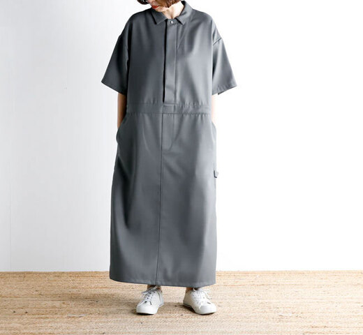 mizuiro ind|フラワープリントスタンドカラーシャツワンピース