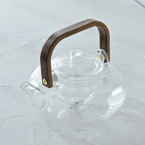 そんなお茶時間を始めるきっかけにぴったりな、ガラスと天然木の美しくもぬくもりのあるティーポットが届きました。