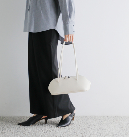 コスメポーチから着想を得た美しい曲線を描く「FIGRE(フィグレ)」。バッグ本体の曲線美に最大限こだわったシリーズです。 定番のボストンにSサイズをリリース。使いやすさはそのままで、よりコンパクトに持ちたい方にむけたサイズ感となっています。 コーディネートに合わせやすい、優しい風合いのシボ合皮を使用。ソフトな印象に仕上げています。 ラウンドボディーに細いハンドルがエレガンス感を与え、オンオフどちらでも使用できるアイテムとなっています。 コスメポーチのように口元が大きく開き、見た目以上に収納力があります。 横長シルエットのバッグは長財布、タンブラーも入ります。