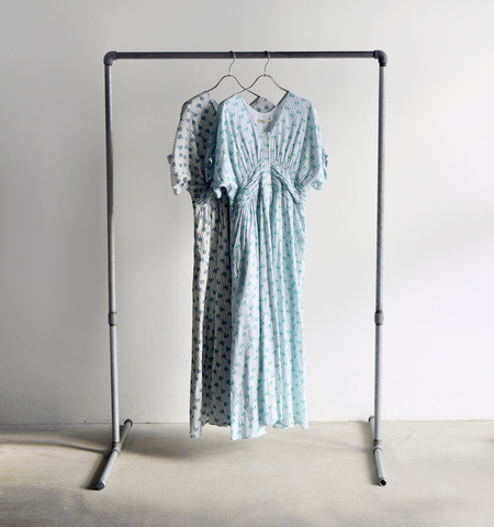 ne Quittez pas(ヌキテパ)より、コットン ジャガードストライプ スモールフラワープリント ウエストギャザー ドレス Cotton Jacquard Stripe Small Flower Print Waist Gather Dress をご紹介します。ストライプ柄を織りで表現したコットンジャガード生地に、繊細なスモールフラワープリントを重ねた、奥行きのある表情が魅力の一着。軽やかで通気性の良いコットン素材は、春夏シーズンも快適な着心地を叶えます。ウエストに施されたギャザーが自然な立体感を生み、身体のラインを拾いすぎない女性らしいシルエットに。一枚で着映えしながらも主張しすぎず、デイリーからお出かけまで幅広く活躍します。