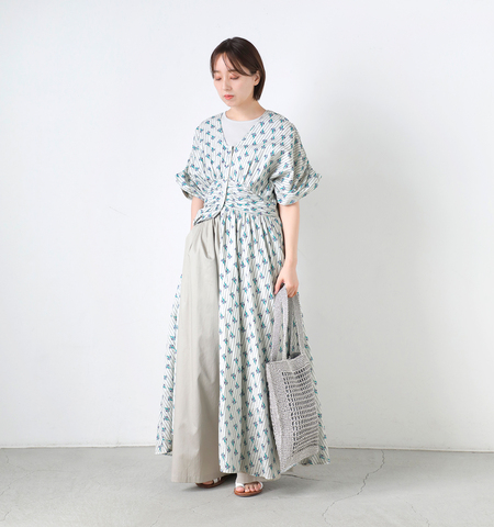 前を閉じてワンピースとしてはもちろん、フロントを開けて羽織りとしての着用も可能。パンツを重ねたレイヤードスタイルや、インナーを覗かせた着こなしなど、幅広いスタイリングに対応します。