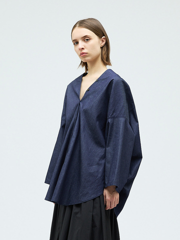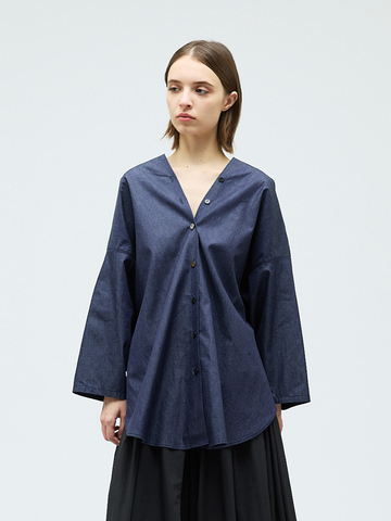 mizuiro ind|スタンドシャツカラーギャザーシャツ