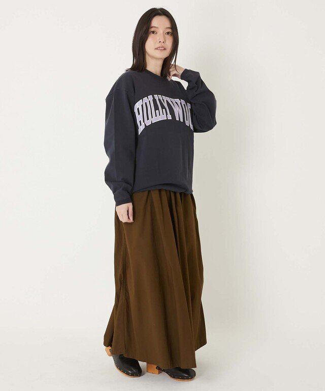 程よくゆとりのあるナチュラルフィットです。裾にリブを施すことで、肩とバストに適度な膨らみが生まれます。ヘビーウェイトな生地感と裾のリブが相まり、スウェットのようなイメージで着用できるロングスリーブTシャツです。