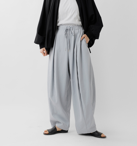 タックと分量感で描く、印象的なバルーンシルエット。丸みのあるフォルムがスタイリングに立体感を与えます。