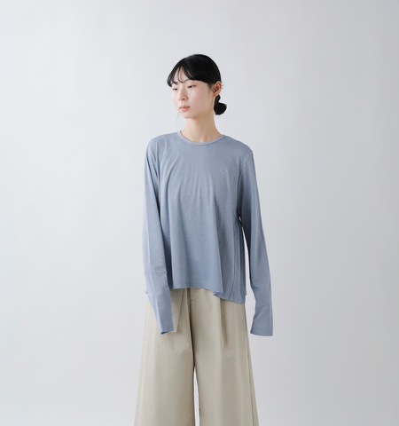 首元は柔らかなリブネックを採用。ブラウスのような上品なシルエットに自然とマッチします。