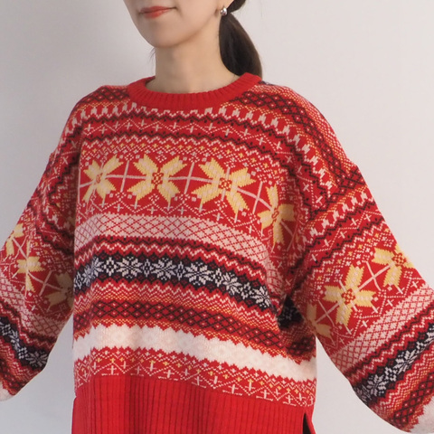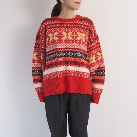 鮮やかなフェアアイル柄で、ざっくりと着れるニットです。