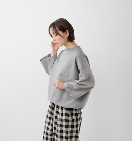 カジュアルなスウェットでありながらラフになりすぎず、程よいハリと柔らかさを兼ね備えているため、きれいめなスタイリングにも自然に馴染みます。