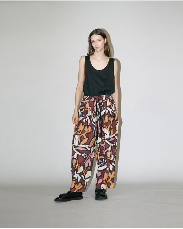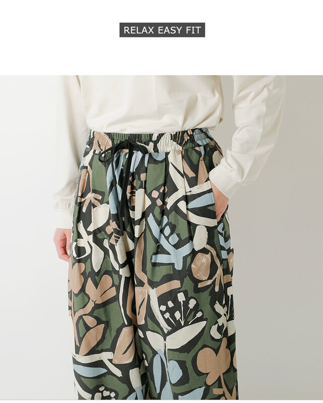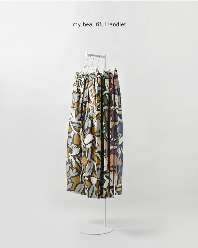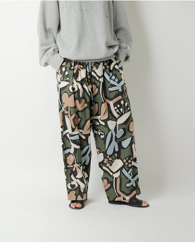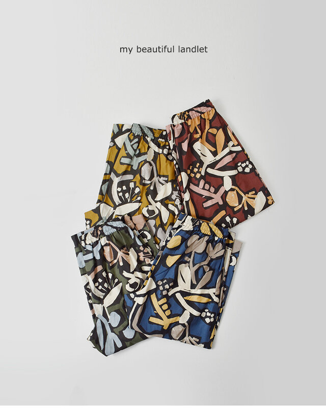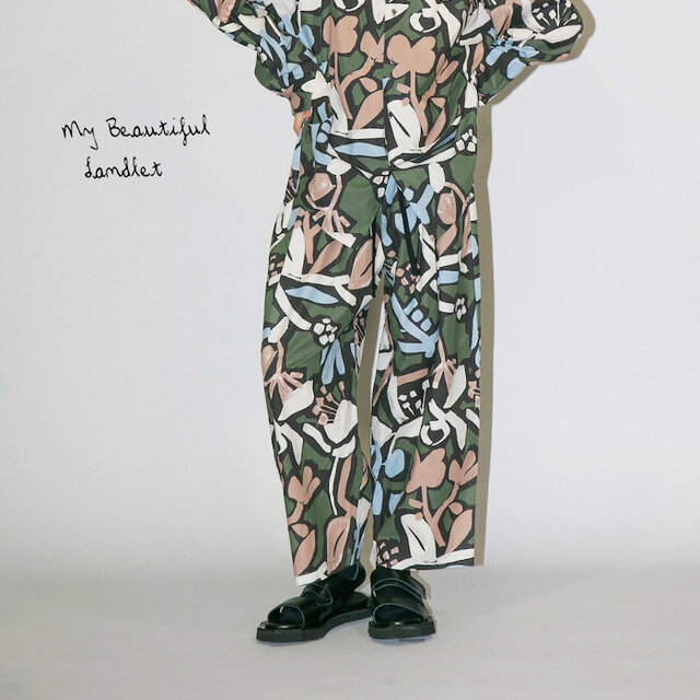 my beautiful landlet(マイ ビューティフル ランドレット)より、ブランドらしいアート性とリラックス感を併せ持った、フラワーピグメントプリントイージーパンツのご紹介です。