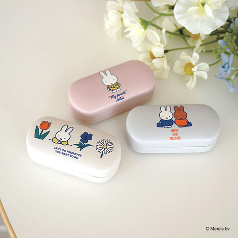 ミッフィーとお花やフルーツのプリントが可愛いコンパクトミラーケース。